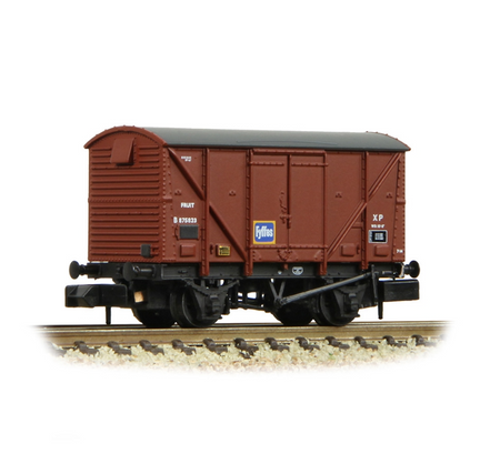 British Railways (BR) inherited a wide range of rolling stock upon Nationalisation in 1948, much of which was aging or in need of modern replacement and so a programme to build new vehicles soon commenced. These new vehicles were built to a variety of standardised designs, for covered vans most of the new designs centred around a 10ft wheelbase chassis with a metal and wood body on top. Alongside general merchandise vans, several specialist types were built including the 12 Ton Fruit Van which employed a metal chassis whilst the van was constructed from a pair of corrugated metal ends, each with a ventilator at the top. The metal body frame was panelled with plywood sheets, and four small ventilators were fitted along the bottom of each side to ventilate the cargo. As the name suggests, the vans were built to transport fruit but in later years they also found use moving general merchandise.