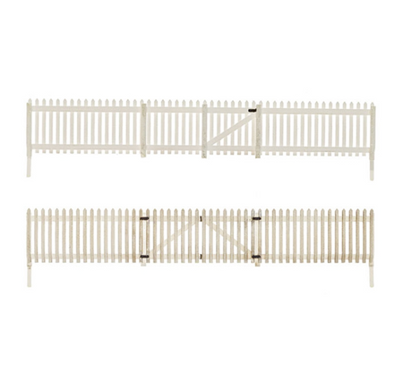 Add character to any scene with hand-painted and authentically weathered O scale Picket Fence. Easily assemble the Fence on your layout by aligning the modular pieces. Features gates, detailed hinges and planter pins for simple installation.