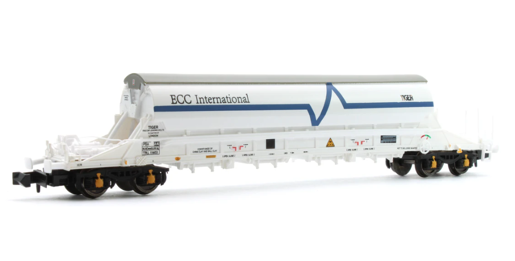 New Tooling has been produced to model the PBA ‘Clay Tiger’ Wagons in N scale for the first time, and this EFE Rail model is finished in pristine English China Clays International White livery, in original condition with un-strengthened solebars and without train-ferry tie-down points.