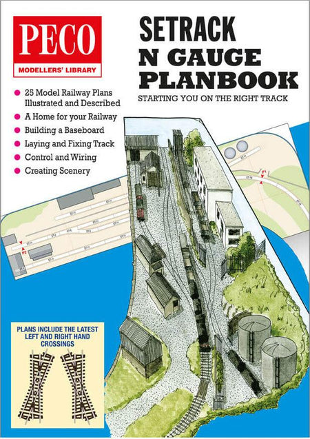 Regularly revised and updated, the 00 and N Gauge Setrack Planbooks are an ideal introduction to the hobby. Each of the layout plans is illustrated with a suggestion of how the layout can be transformed into a realistic representation of a real railway, and a detailed list of the components required is also supplied. Plus pages of useful tips on constructing baseboards, track laying etc - in fact all you need to know to make a good start (Planbooks are included in our 00 Starter Track sets Ref ST-100 and 101, and our N Starter Track Sets Ref ST-300 and 301).
