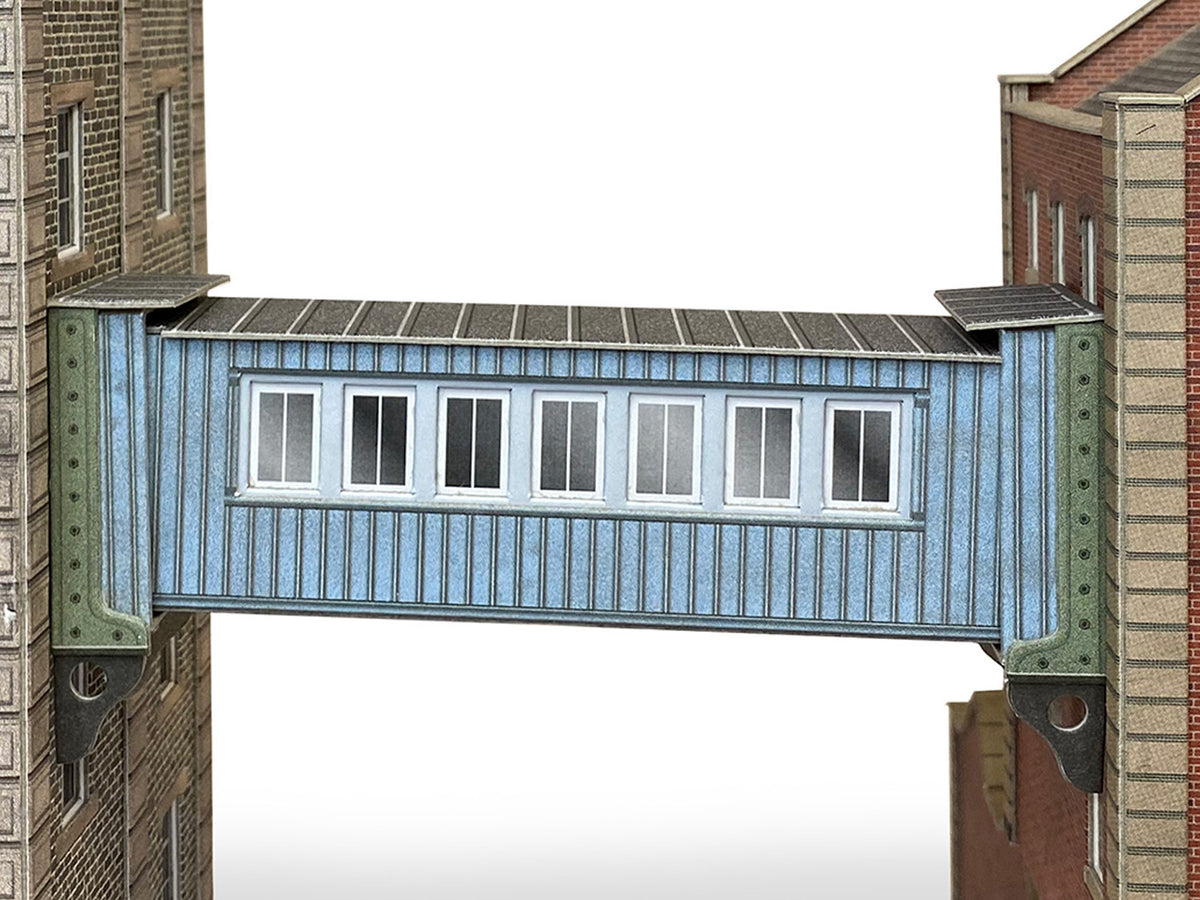 1:148 Scale model of an Overbridge/Covered Walkway produced as a highly detailed card kit. This kit includes printed walling, glazing and is ideal for placing between two industrial buildings.