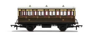 Hornby GWR, 4 Wheel, 3rd Class coach No.1889 with Fitted Lights - Era 2/3. This model also features new Maglight system which allows coach lights to be turned on and off using a magnetic wand, removing the need for track pick-ups which would increase rolling resistance