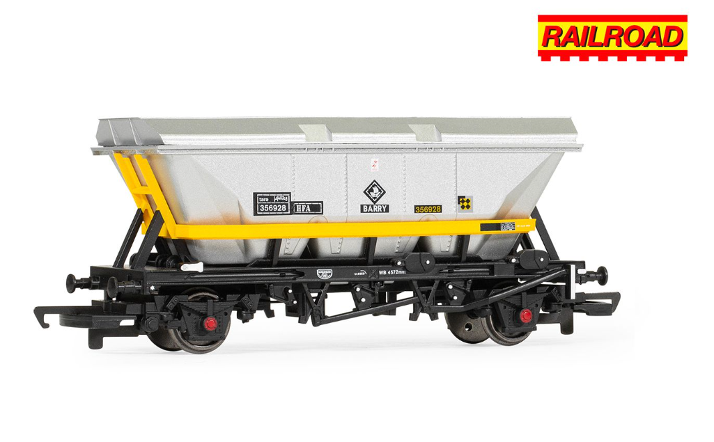 When originally designed in 1964, some hopper wagons intended for Merry-go-Round (MGR) trains were given an extension to their tops, known as a canopy or top skirt, which allowed their carrying capacity to be increased to 32 tonnes, using the full 45 tonnes gross laden weight allowed for a two-axle wagon. There were three basic types ‘HBA’, ‘HCA’ and ‘HFA’.