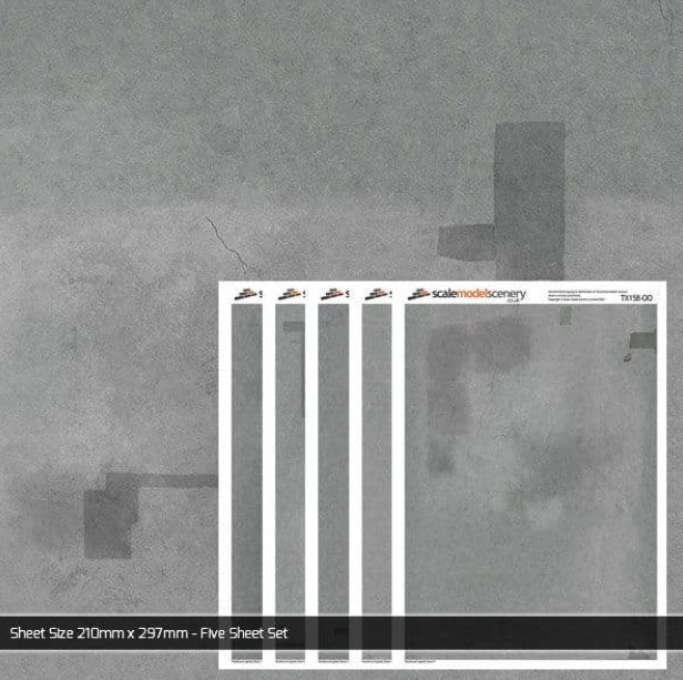 A pack of 5 unique A4 sheets (210mm x 297mm) of photo-realistic, weathered asphalt paper sheets. Ideal for use when scratch-building yards, car parks, forecourts and more on your OO gauge model railway layouts and 1:76 scale dioramas. The pack comprised of 5 uniquely weathered sheet with an assortment of cracks and patched asphalt etc.